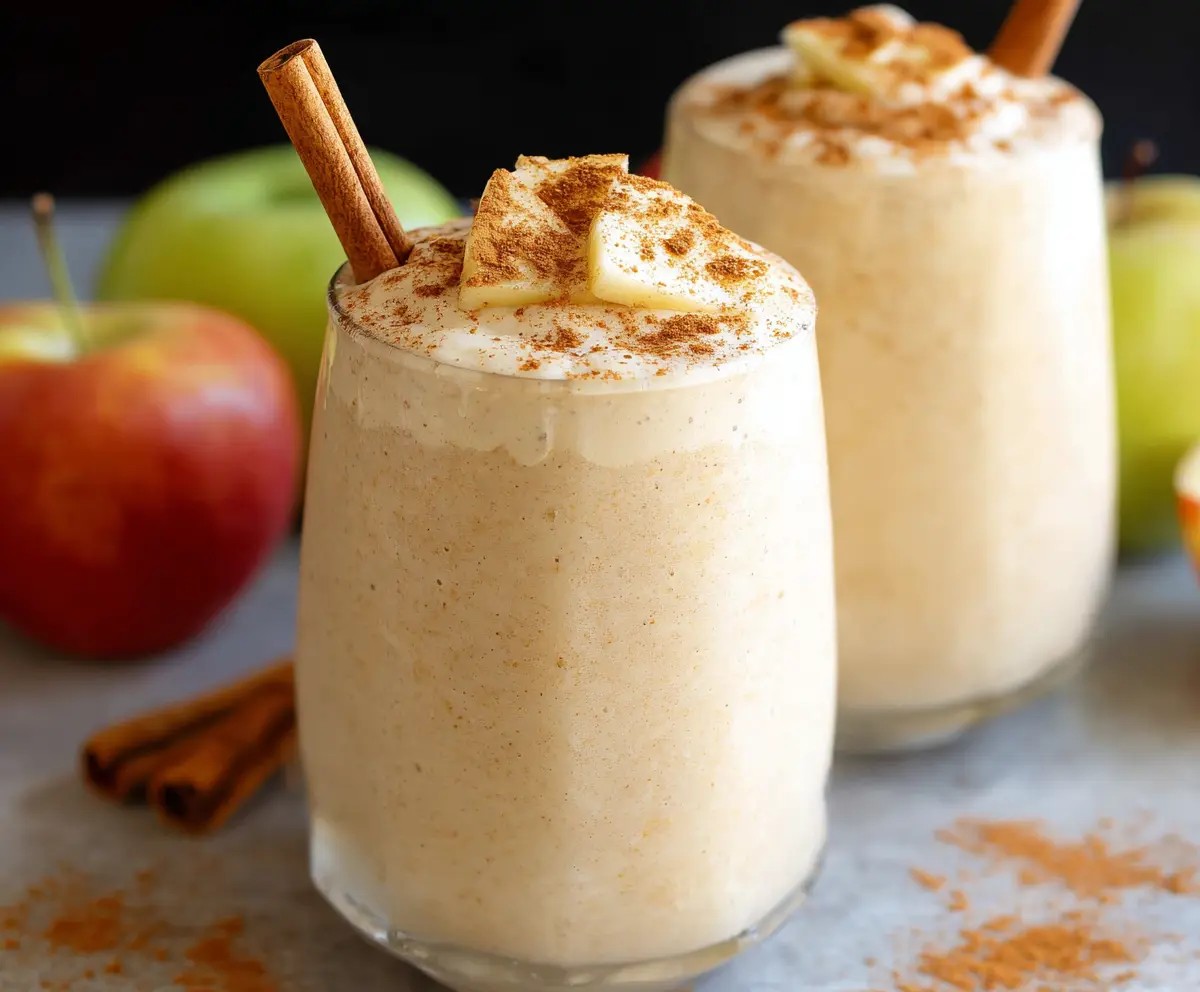 This Apple Pie Smoothie takes about 10 minutes to prepare, making it a quick and easy treat. You simply chop the ingredients, blend them up, and garnish—perfect for a busy morning or an afternoon snack!