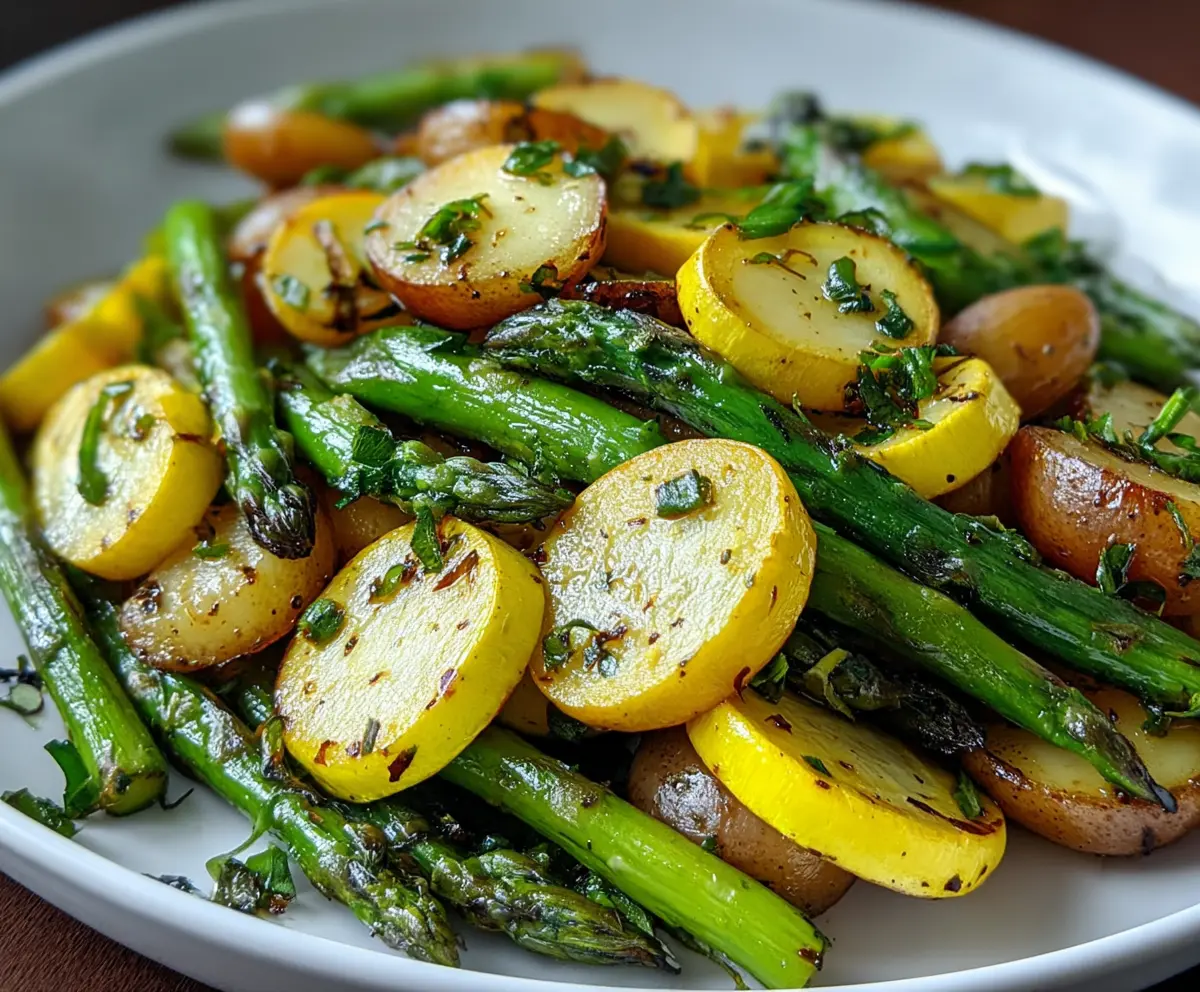 This colorful dish features fresh asparagus, zucchini, and squash tossed together for a tasty veggie medley. It’s light, healthy, and super easy to prepare!