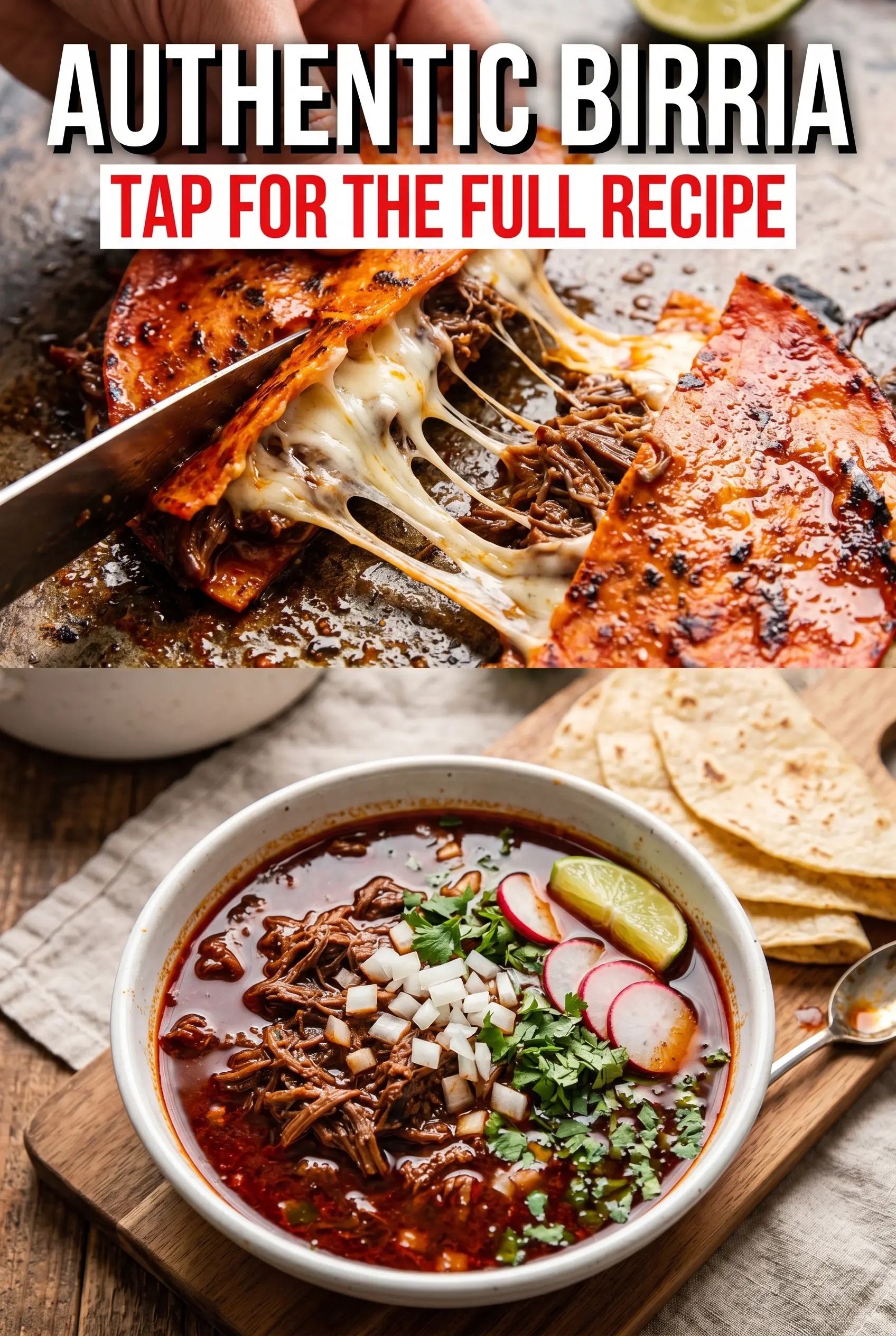 Authentic birria delivers deep red consomé and fall-apart shredded beef simmered in a spiced chile broth. Make it as birria tacos by dipping tortillas in consomé, or serve as a rich stew with lime and fresh garnishes.