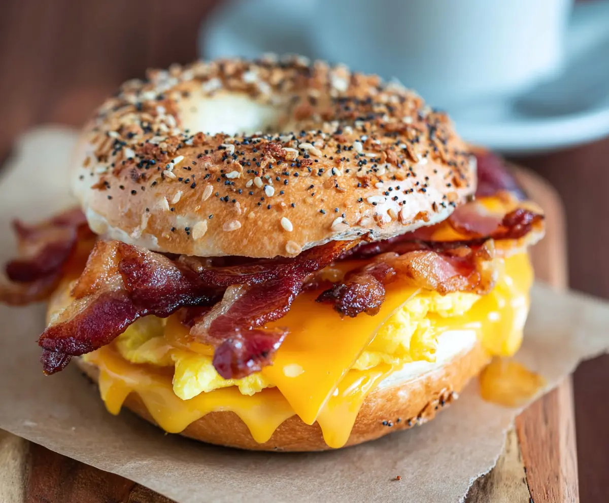 This Bacon Egg and Cheese Breakfast Bagel is a tasty way to start your day! With crispy bacon, a fluffy egg, and melty cheese all nestled in a warm bagel, it’s super satisfying.