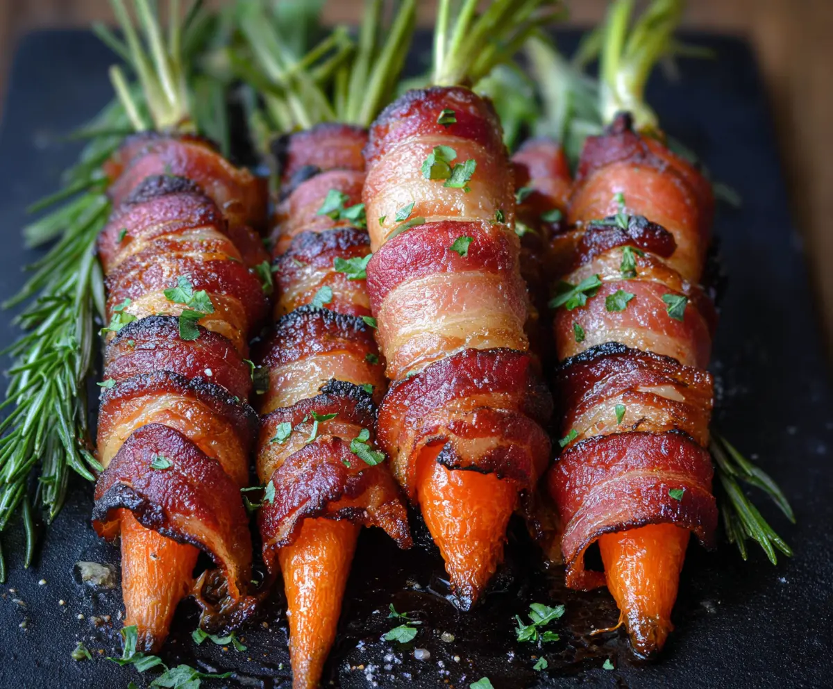 Delicious bacon-wrapped carrots on a plate ready to serve
