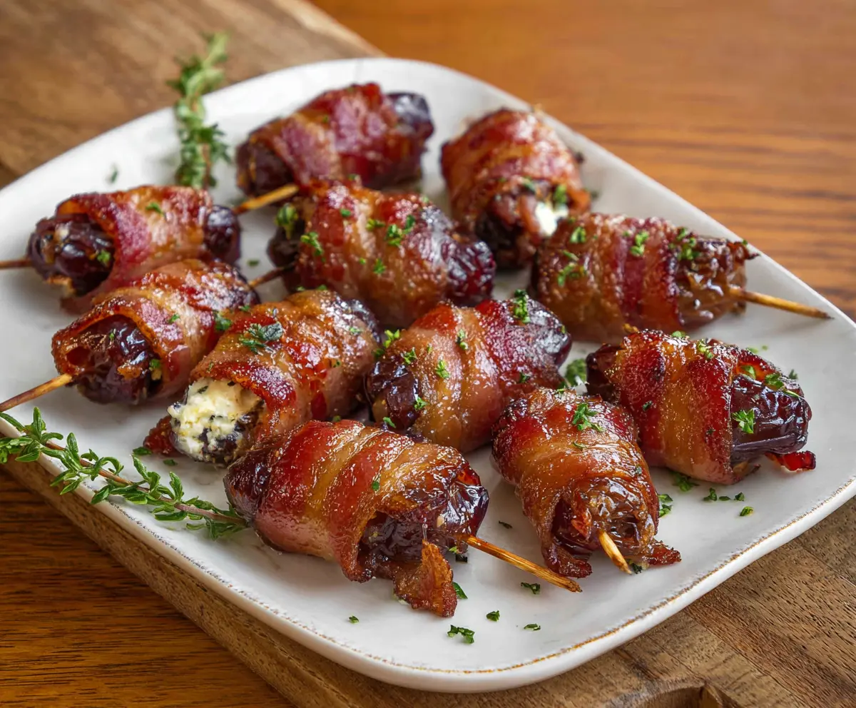 Absolutely! You can prepare the stuffed dates and wrap them in bacon up to a day in advance. Simply cover and refrigerate them. When you’re ready to serve, bake them straight from the fridge, adding a couple of extra minutes to the cooking time to ensure they’re heated through.