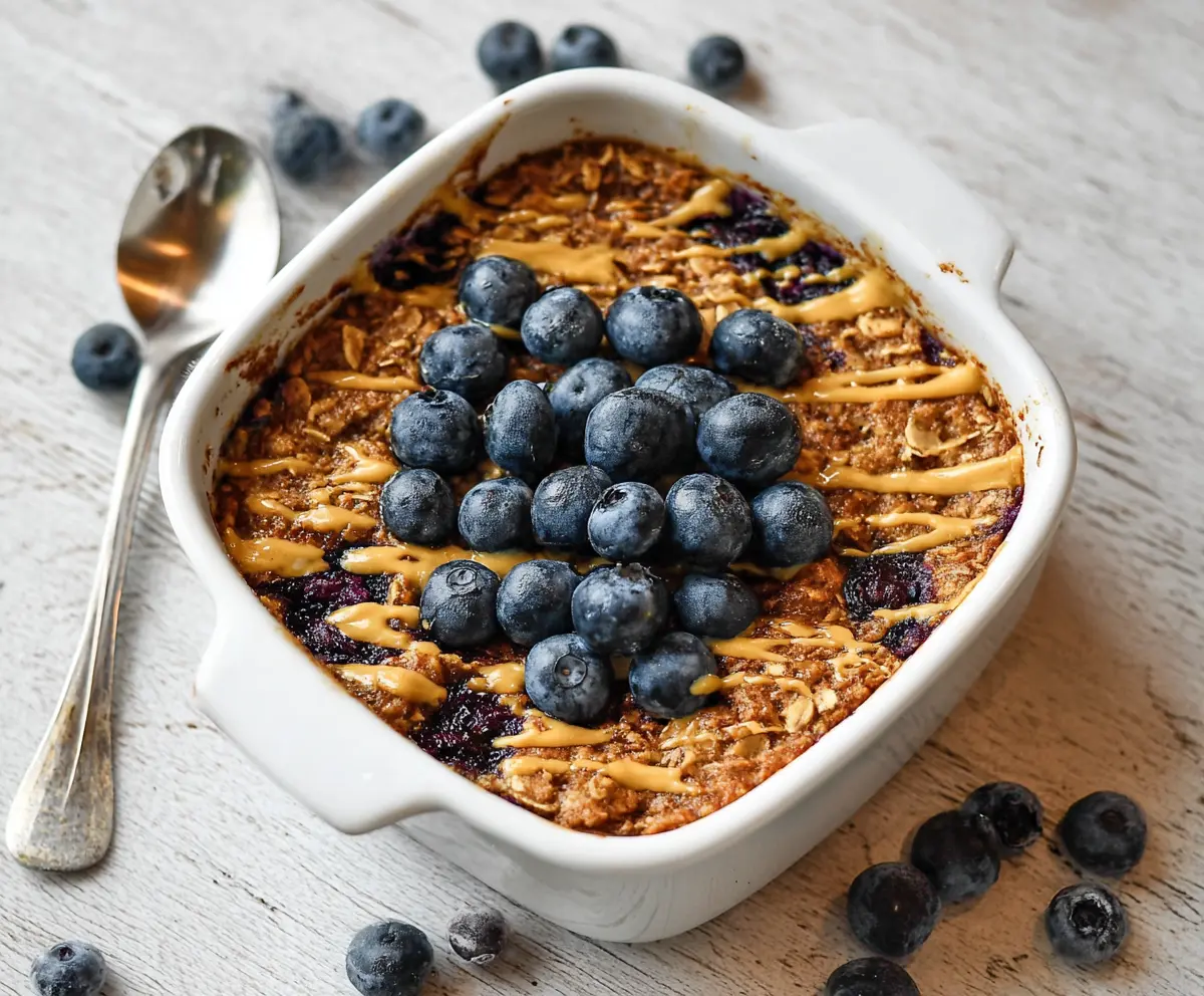 Before serving, sprinkle the top with the remaining blueberries and raspberries. You can also drizzle some peanut butter or almond butter for an extra delicious touch. Enjoy your warm baked protein oatmeal as a fulfilling and healthy breakfast!