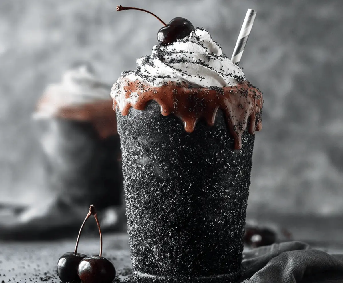 This black milkshake is a fun twist on the classic treat! With rich chocolate or charcoal making it dark and creamy, it’s sure to catch your eye and tickle your taste buds.