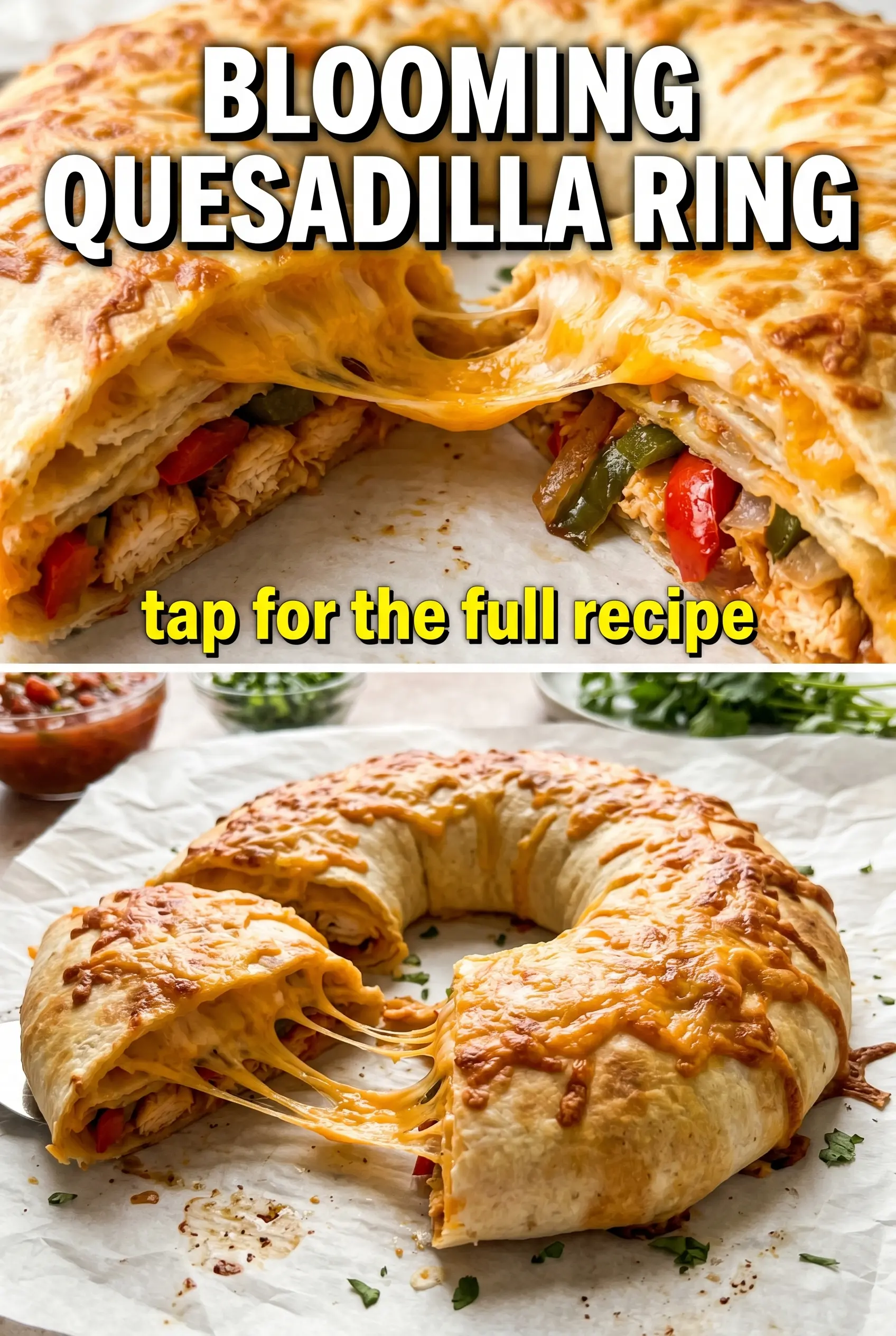 Save this Blooming Quesadilla Ring for the next time you need a crisp, cheesy party appetizer that slices into perfect triangles.