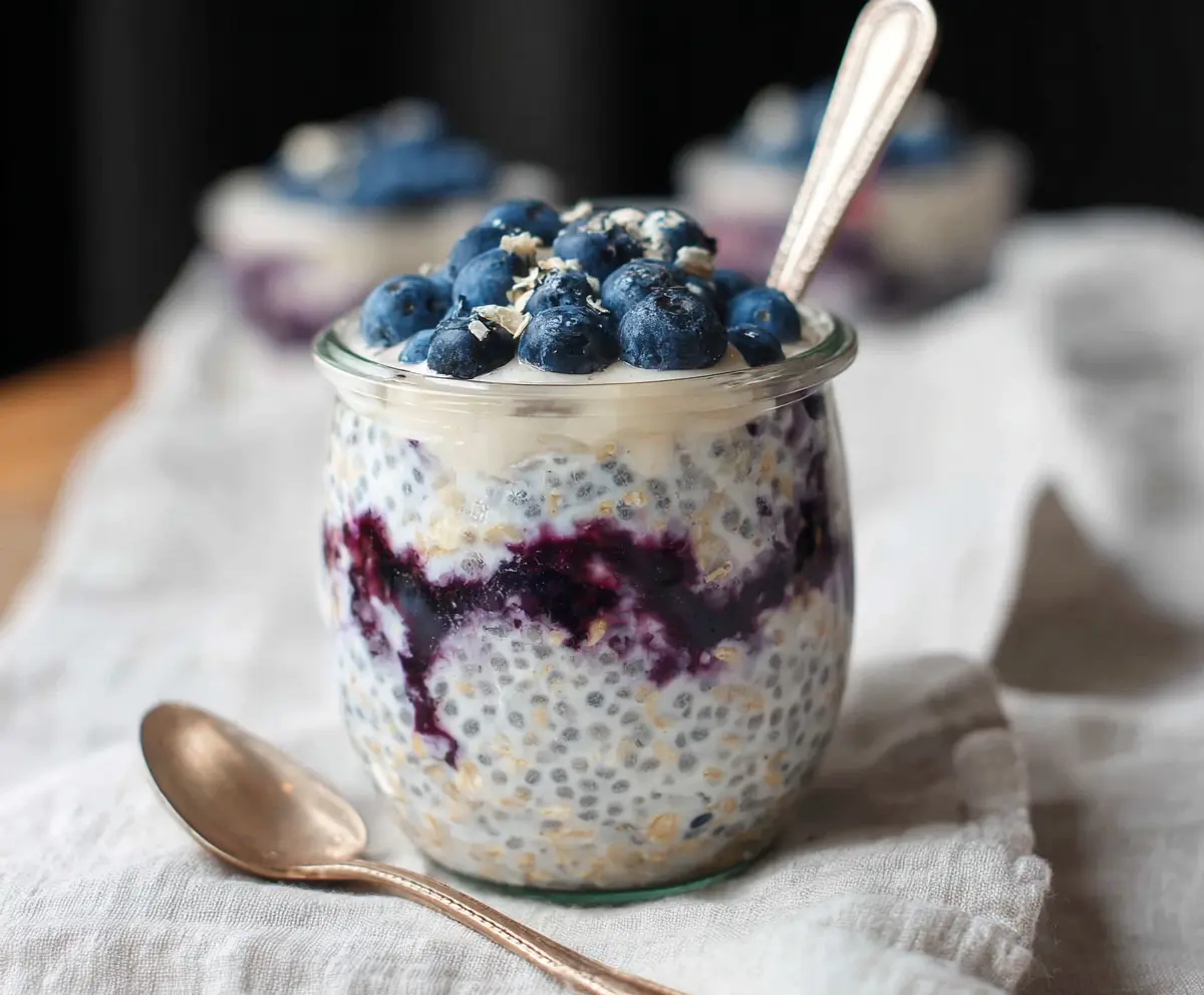 When morning comes, give the mixture a good stir. It should be nice and creamy. Serve it up in bowls or keep it in the jar for an on-the-go breakfast. Top with additional fresh blueberries and a sprinkle of oats or chia seeds for extra crunch!