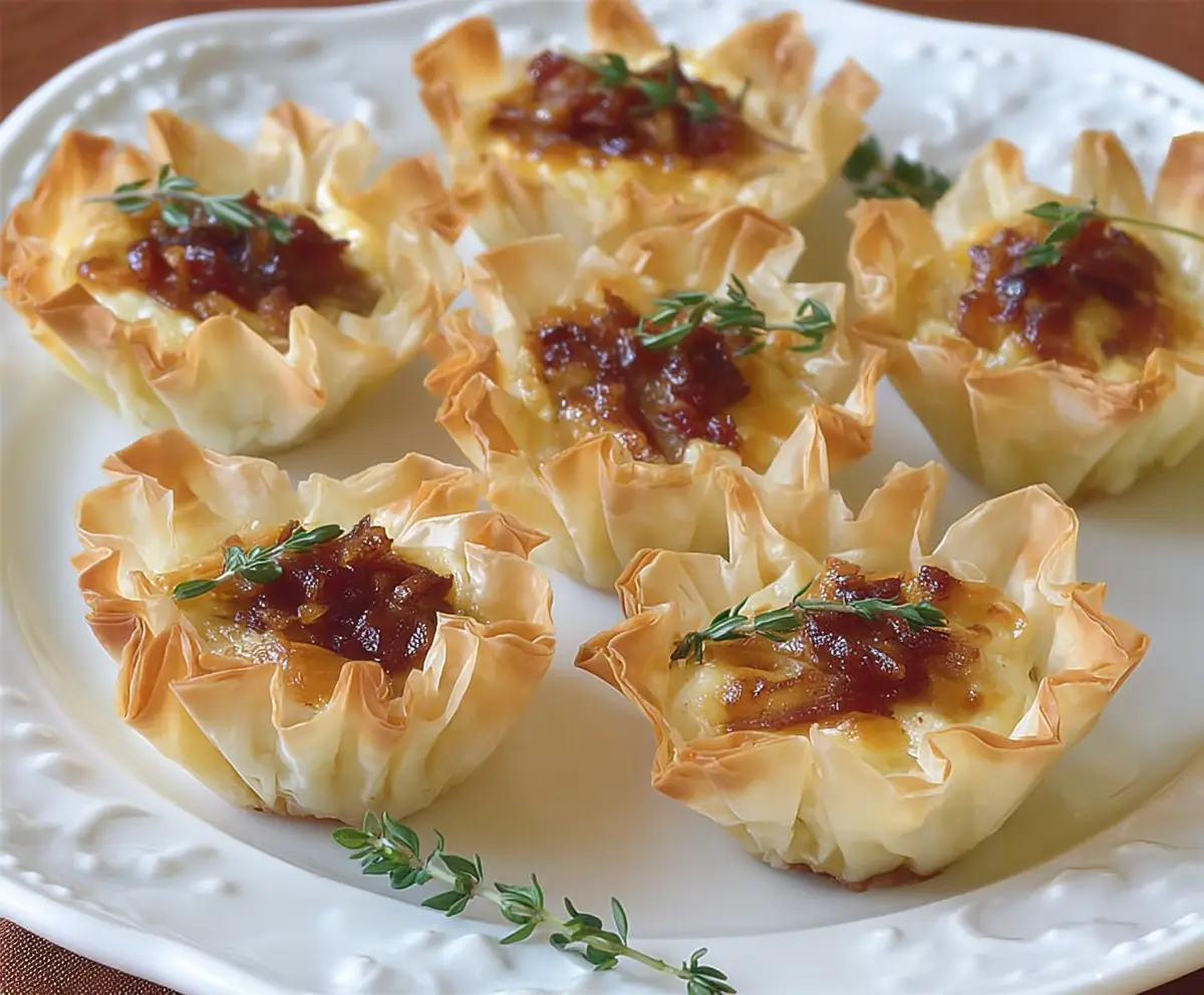 Once baked, remove the cups from the oven and let them cool for a few minutes. If desired, garnish with fresh thyme or rosemary sprigs for a touch of elegance. Serve warm and enjoy your delicious Brie and Bacon Phyllo Cups—your guests will love them!