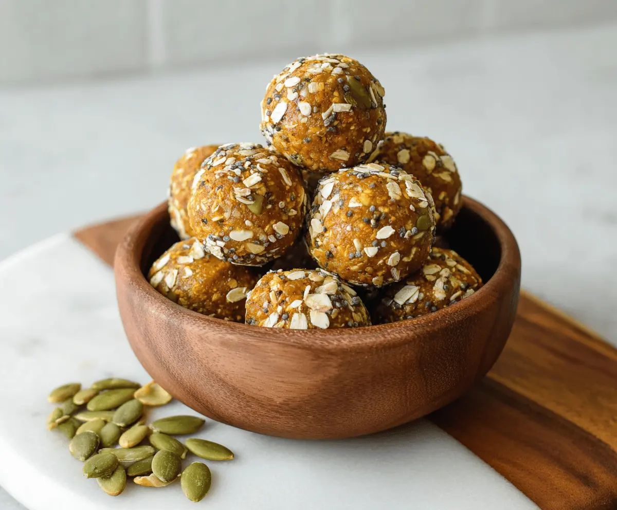 Enjoy these yummy and nutritious Chia Pumpkin Protein Balls anytime you need a boost!