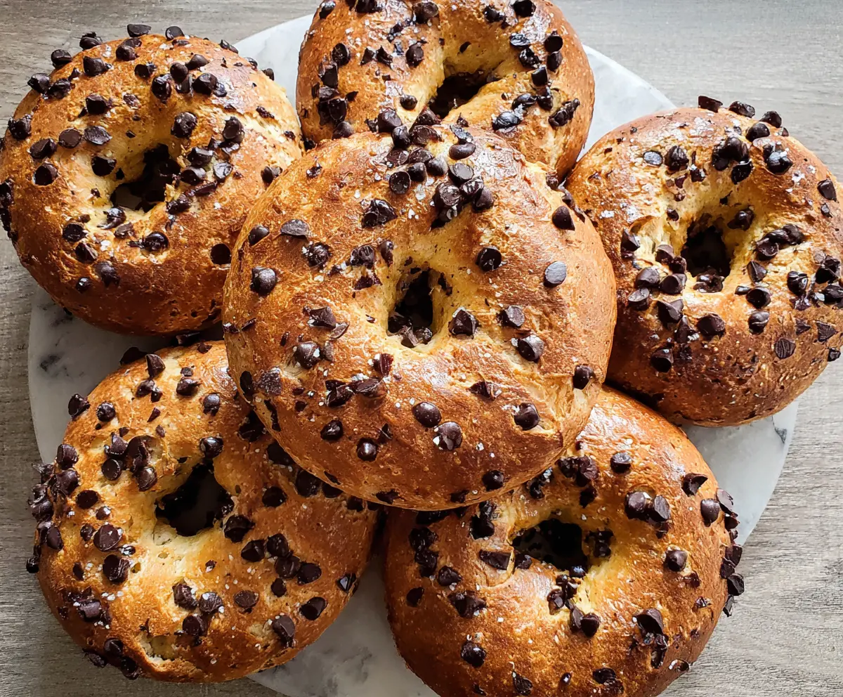 These chocolate chip bagels are a fun twist on a classic! Soft and chewy, they pair the crunch of a bagel with the sweet joy of chocolate chips. Yum!