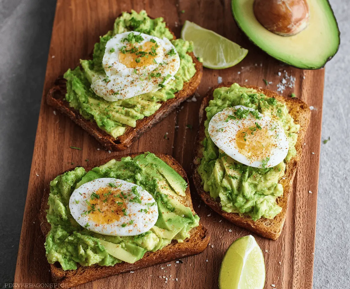 Enjoy the delightful combination of creamy avocado and soft eggs with every bite!
