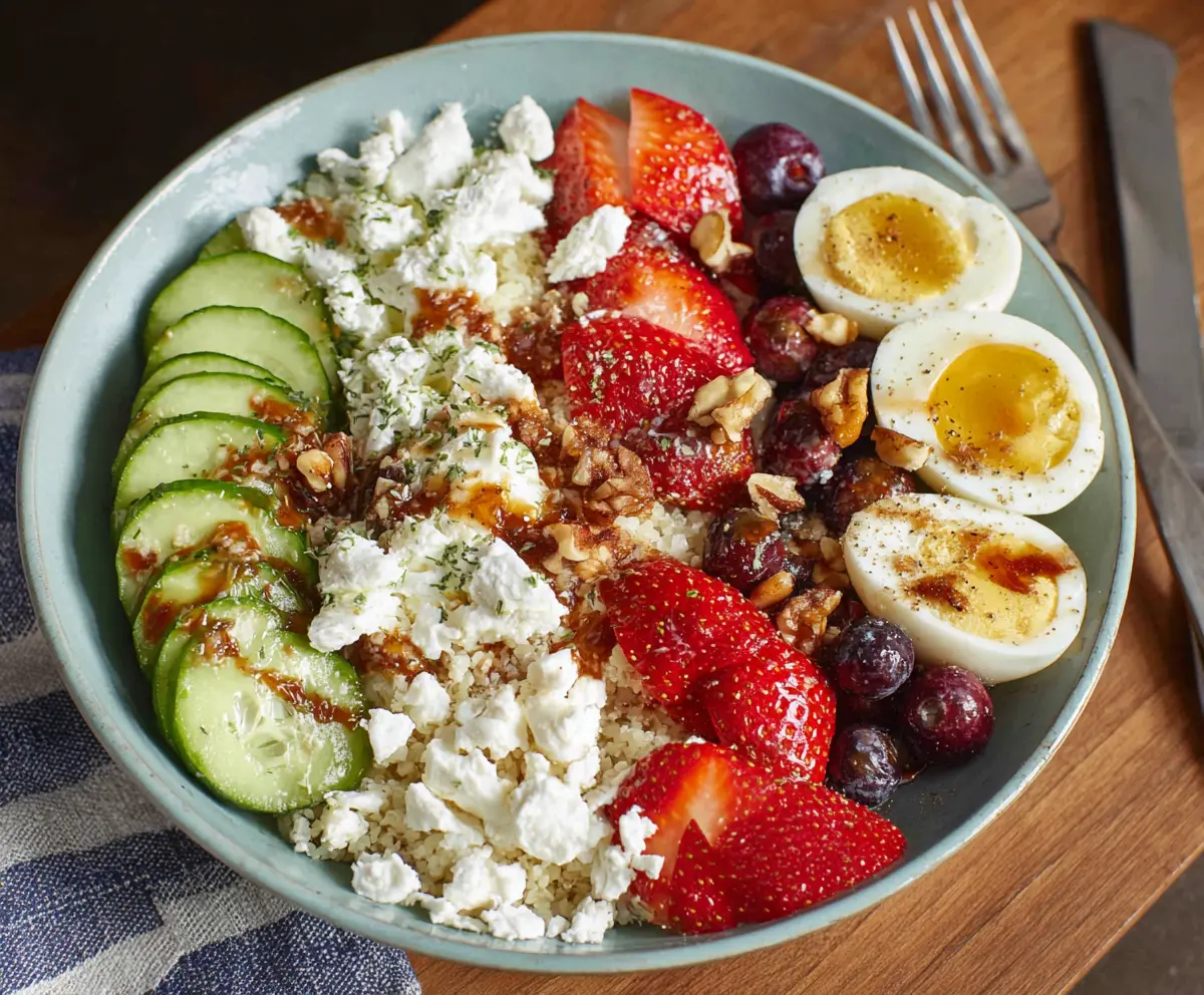 If you like, drizzle a little olive oil over everything for added richness. Then, serve your Cottage Cheese Protein Bowl immediately. It’s a refreshing and nutritious meal that’s perfect anytime of the day. Enjoy every bite!