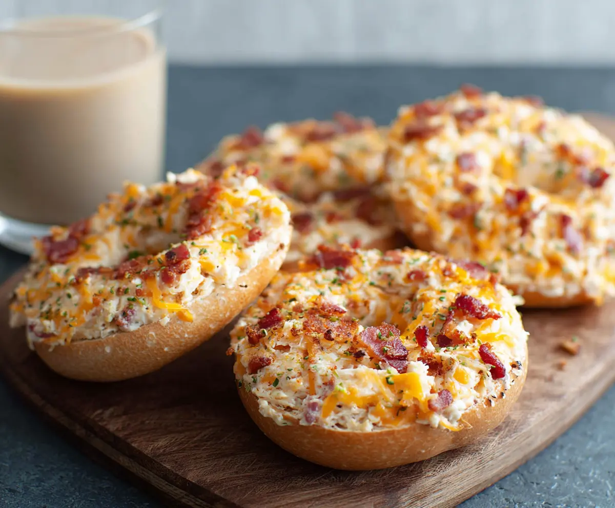 These creamy bacon cheddar bagels are a tasty treat! With gooey cheese and crispy bacon, they are perfect for breakfast or a snack. Who can resist those flavors?