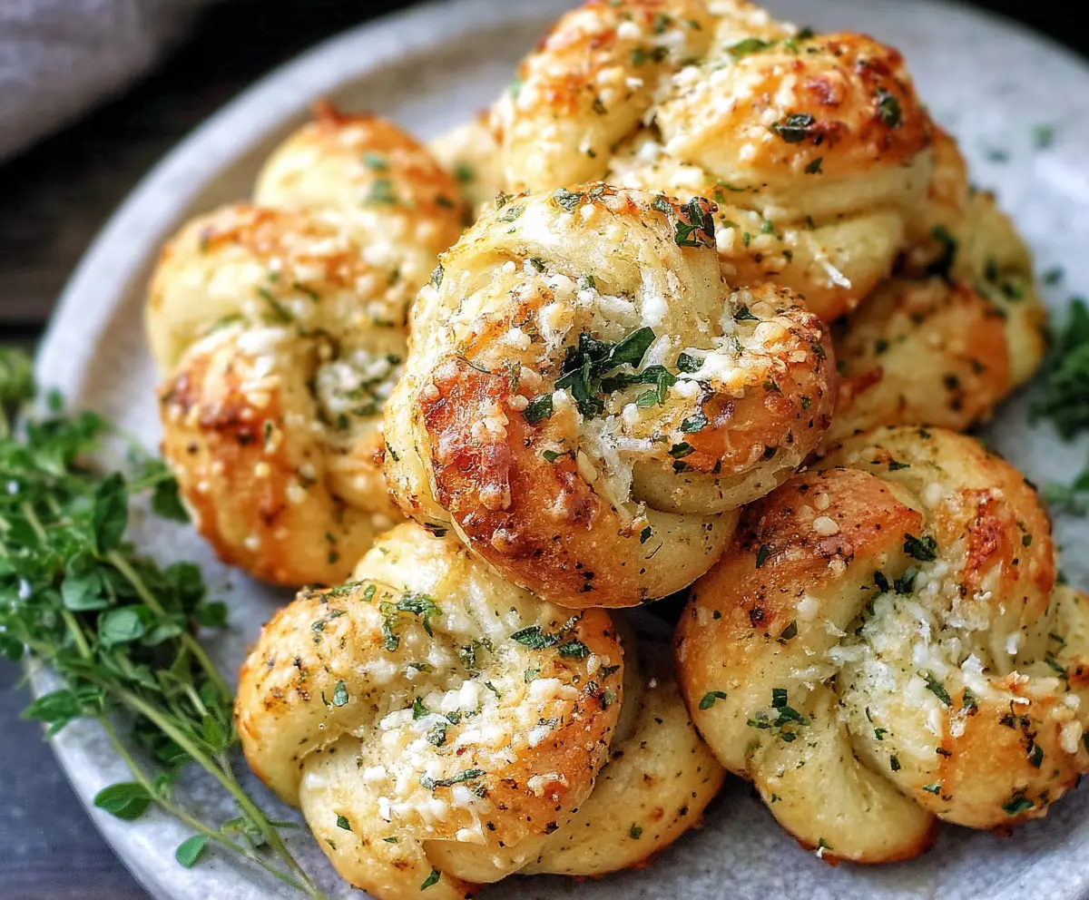 These knots are fluffy on the inside and infused with rich garlic butter and Parmesan flavor—perfect for any occasion!