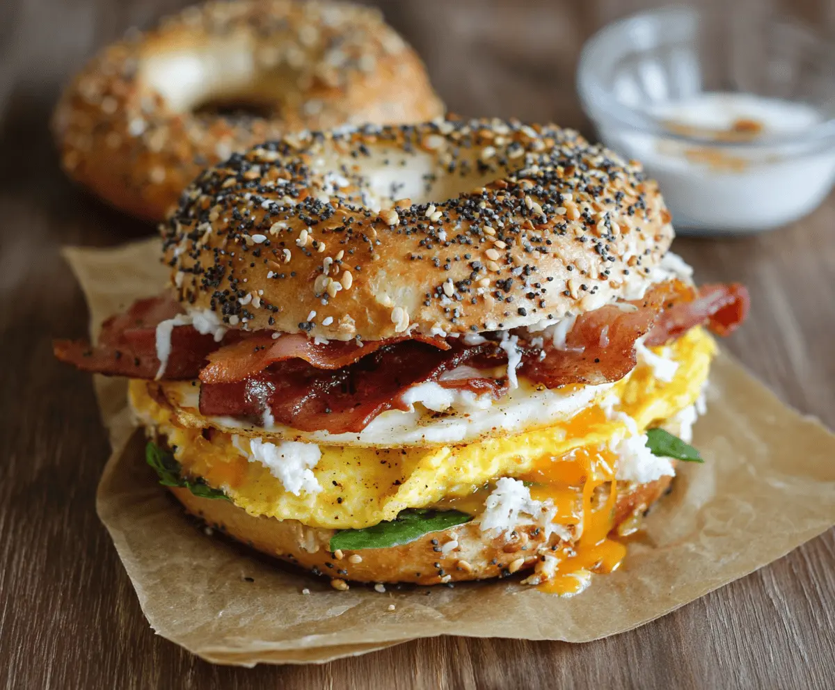 This Everything Bagel Breakfast Sandwich is a morning treat you won’t want to miss! Imagine a toasted bagel sprinkled with all the tasty bits, filled with eggs, cheese, and your choice of meat.