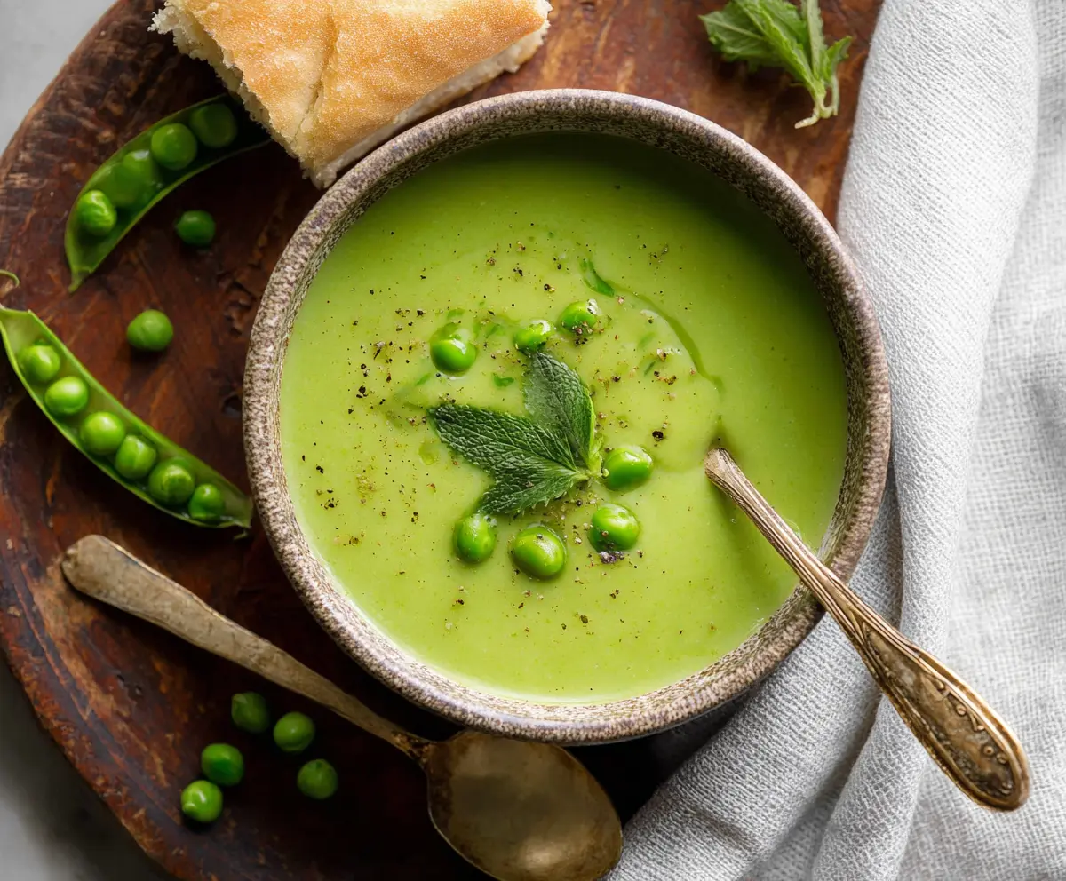 Enjoy your fresh, vibrant pea soup with its bright green color and smooth texture! It’s a delightful dish that warms both body and soul.