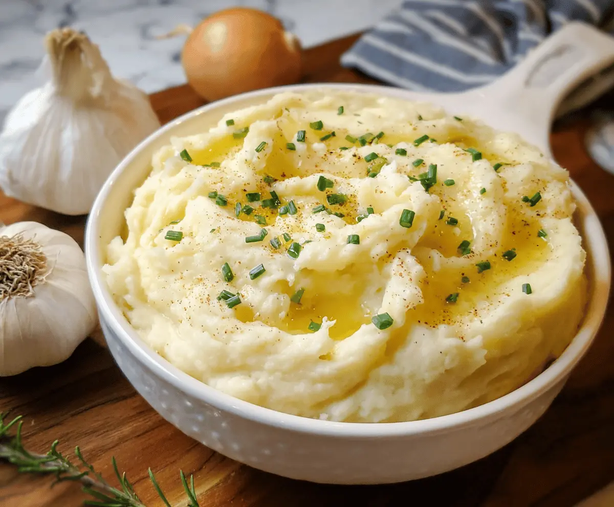 Garlic mashed potatoes are creamy and full of flavor! They’re made by mixing fluffy potatoes with rich butter and a good dose of garlic, making them extra tasty.
