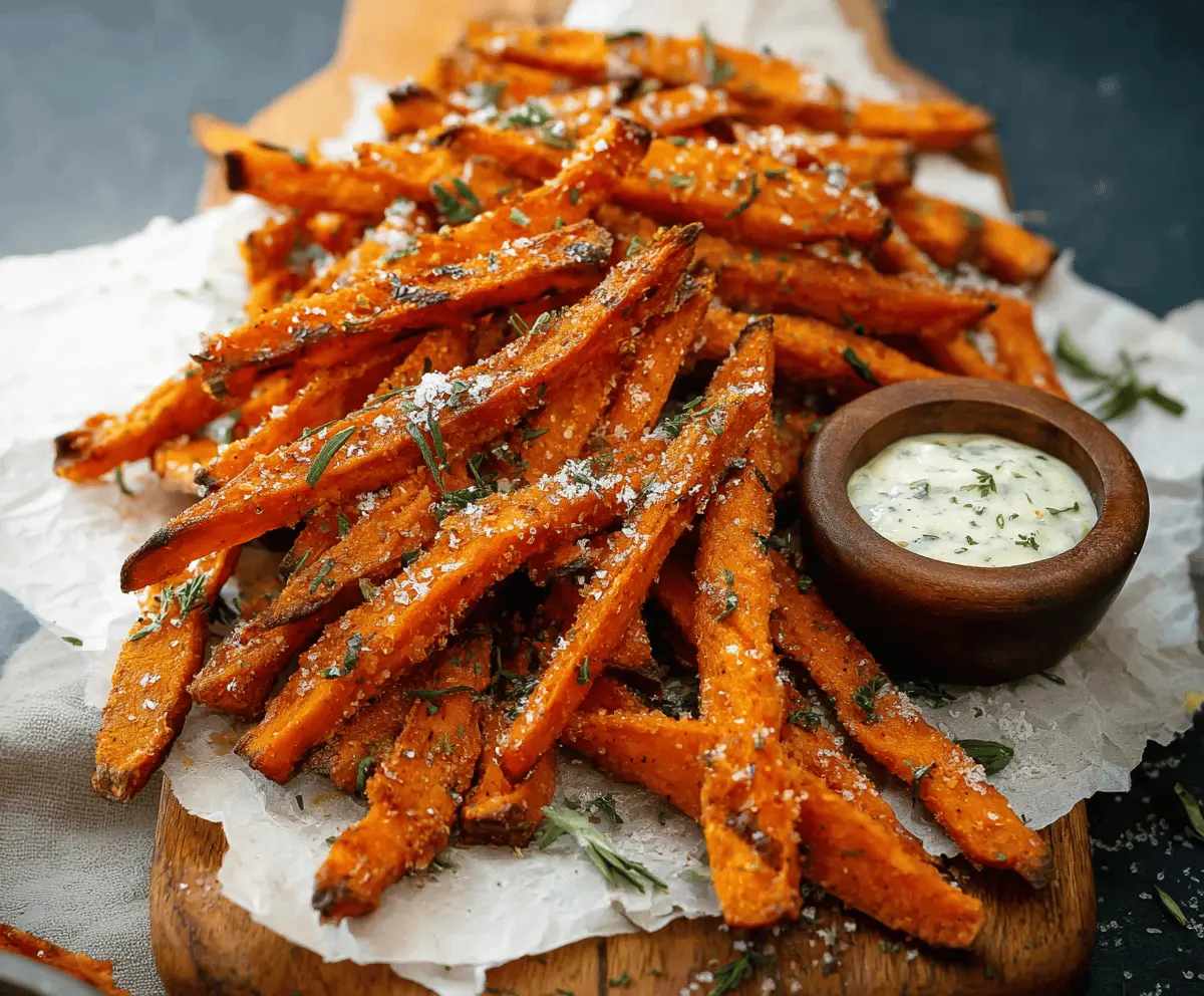 Once the fries are golden and crispy, take them out of the oven. Sprinkle with a little extra salt and chopped fresh parsley for a pop of color. Serve them warm with the garlic dipping sauce on the side for a fabulous snack. Enjoy your crispy, flavorful Garlic Sweet Potato Fries!