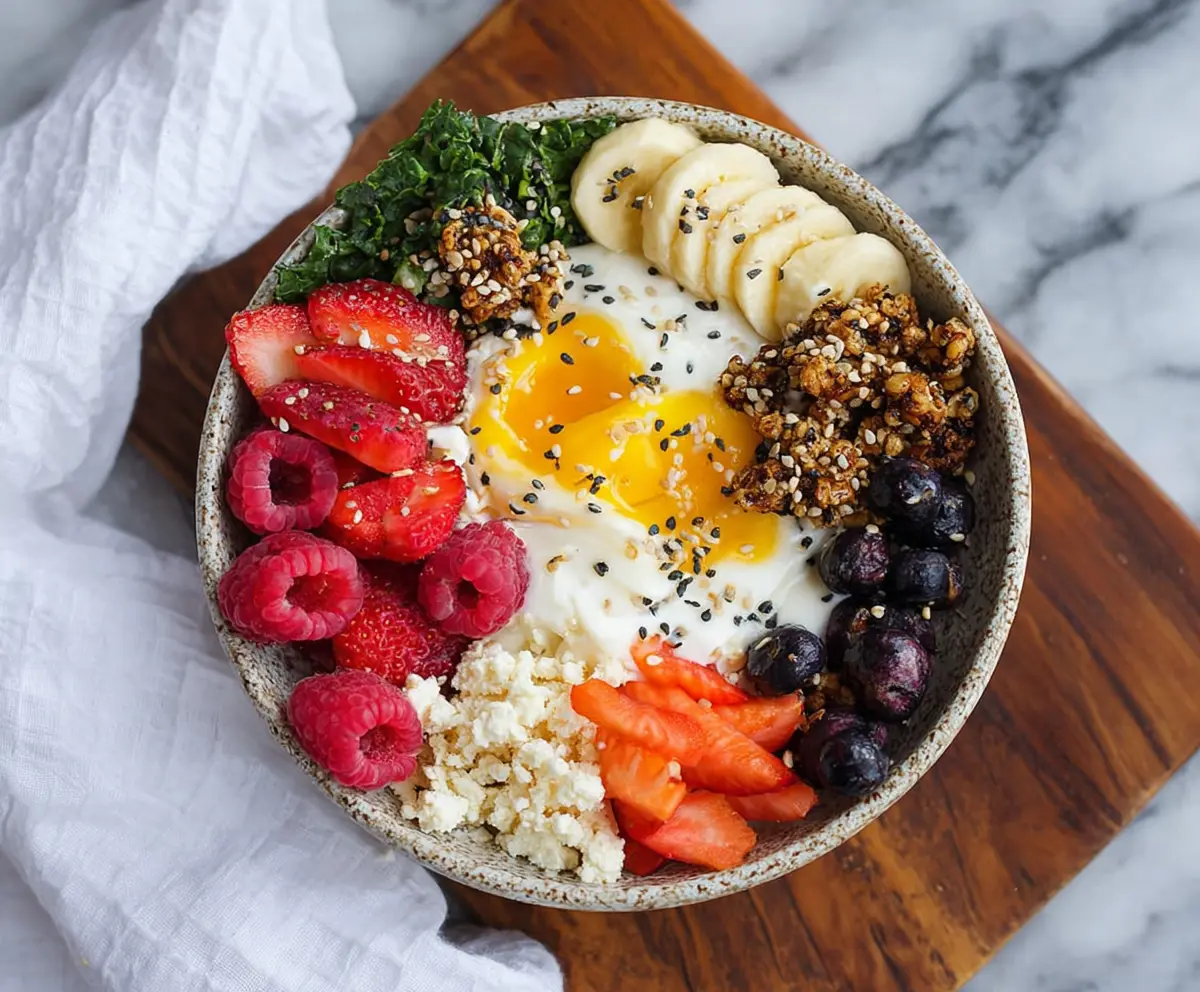Greek Yogurt: The star of this bowl is plain Greek yogurt, packed with protein and creaminess. If you’re dairy-free, try coconut yogurt or almond yogurt for a non-dairy option.