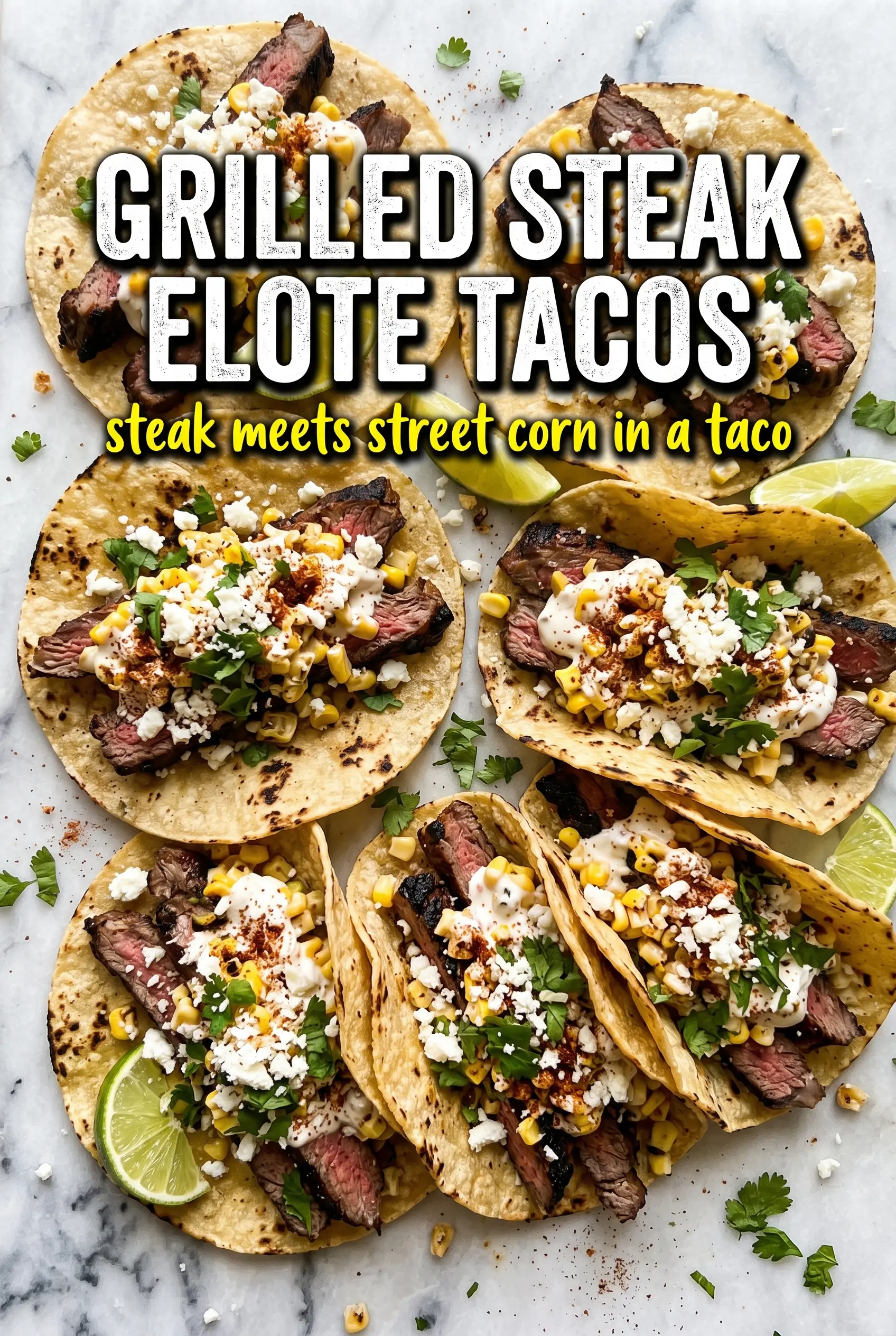 Save these grilled steak elote tacos for the nights when you want smoky steak, creamy corn, and warm tortillas in one bite.