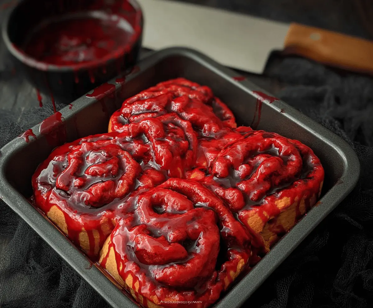 These delicious cinnamon rolls combine warm, sweet cinnamon flavor with a spooky red icing that’s perfect for Halloween celebrations! Enjoy creating this fun treat that will surely impress your friends and family!