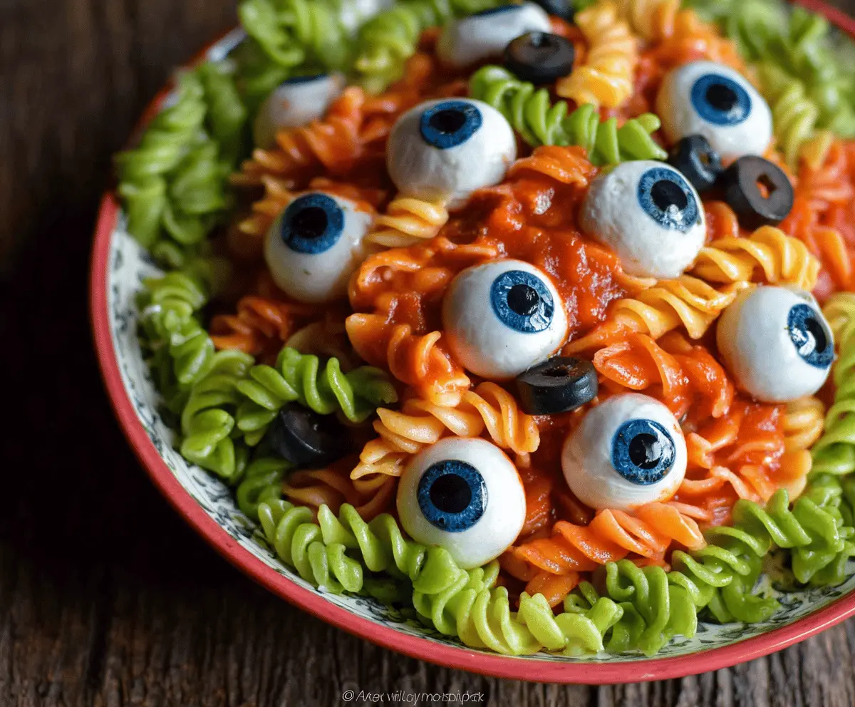 Get ready for a spooky treat with this Halloween Eyeball Pasta Salad! It’s a fun twist on pasta, featuring colorful noodles and tasty veggies, all topped with eyeball-like mozzarella balls.