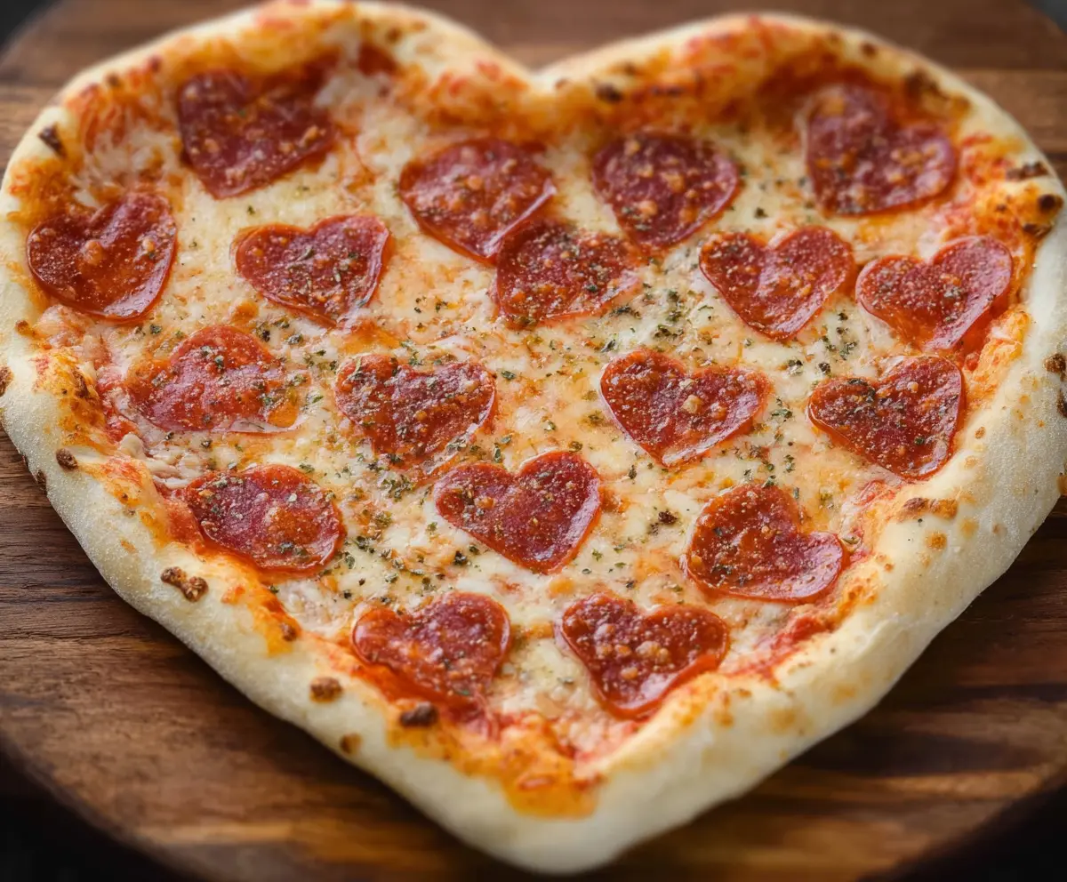 Enjoy your charming and delicious homemade heart-shaped pizza! Perfect for any romantic occasion or just a fun night in!