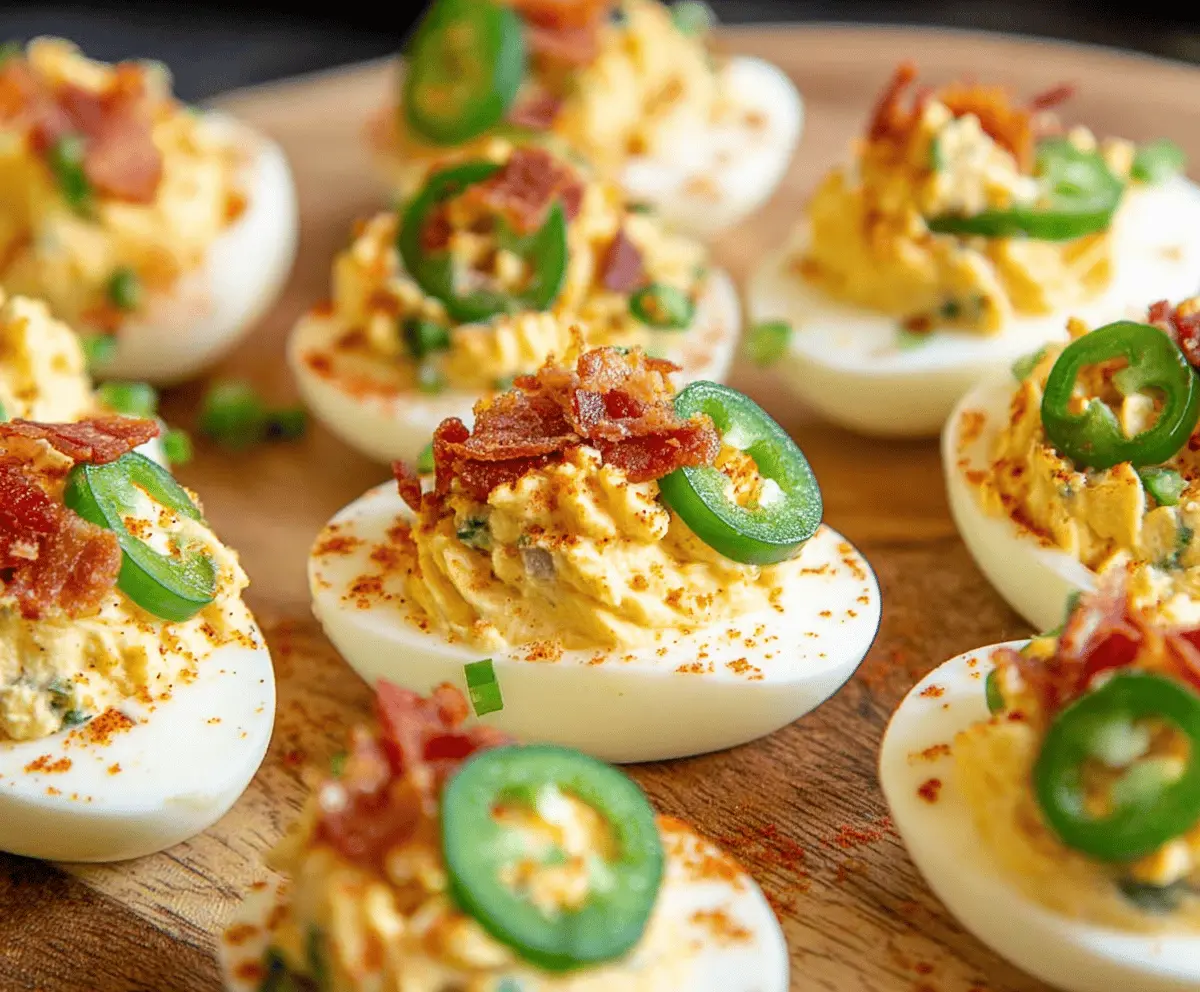 These Jalapeño Popper Deviled Eggs are a fun twist on a classic! They’re creamy and a little spicy, packed with jalapeños, cream cheese, and crispy bacon bits.