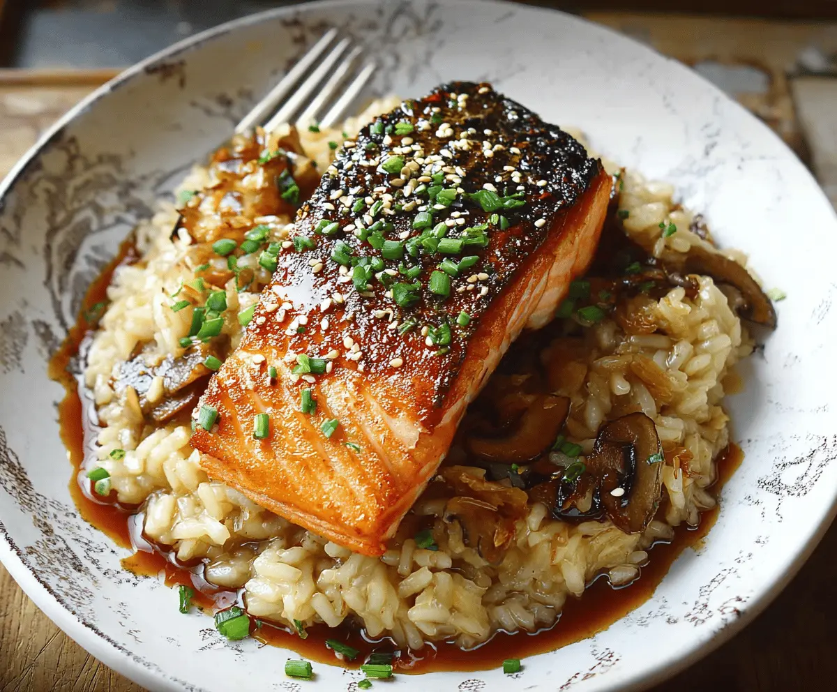This creamy Japanese style risotto pairs fluffy rice with tasty seared salmon. It’s like a warm hug on a plate, packed with umami flavors you’ll love!