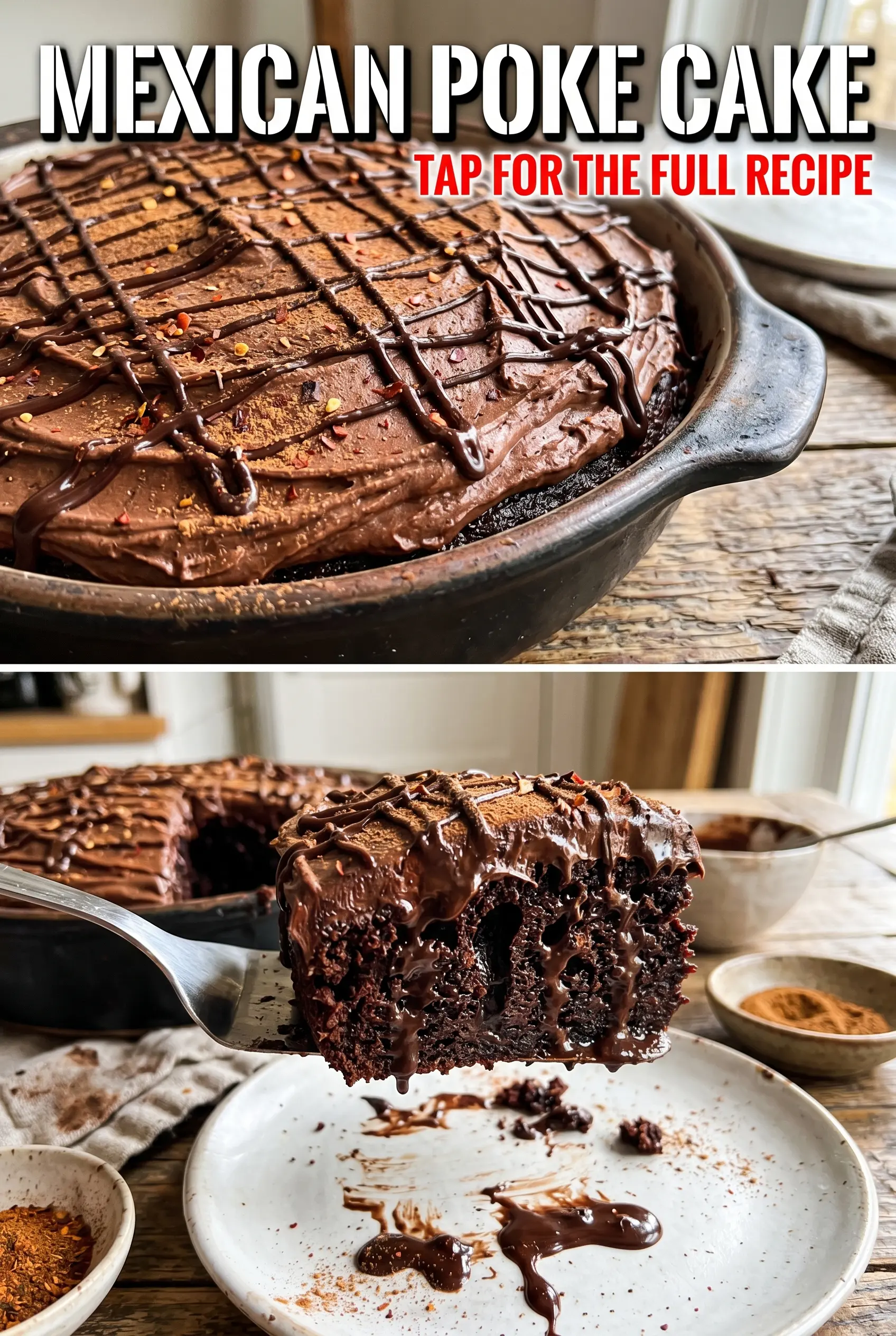 Save this Mexican Chocolate Poke Cake for the kind of dessert that turns a simple sheet cake into a fudgy, cinnamon-kissed crowd-pleaser.