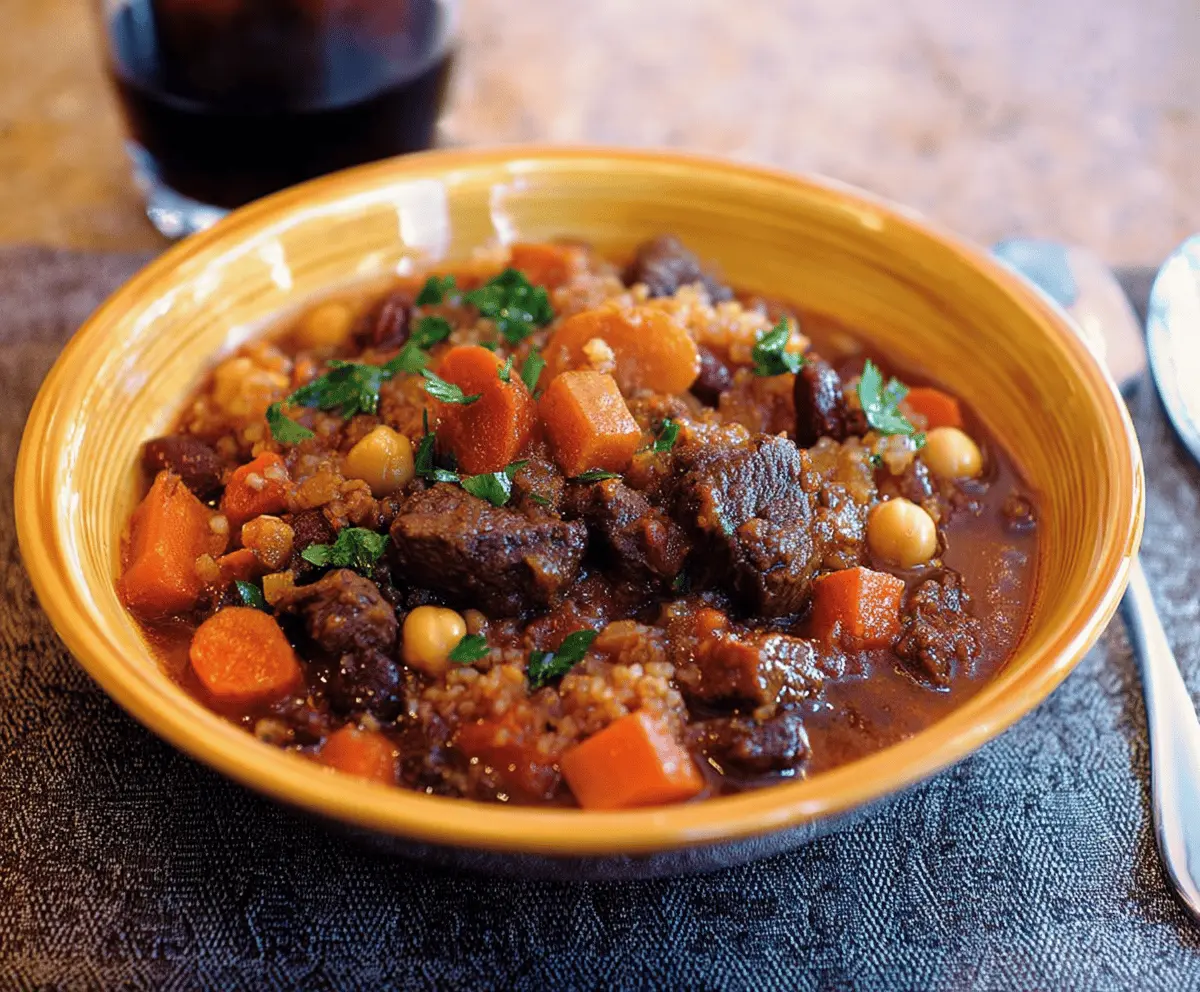 Enjoy this rich and aromatic Moroccan beef stew that combines tender meat, savory spices, and delightful sweetness from dried fruit! It’s a comforting meal perfect for sharing with family and friends.