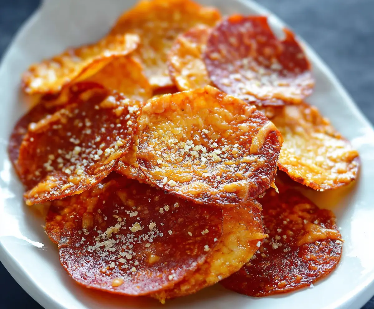 These pepperoni and cheese chips are super crispy and packed with flavor! Perfect for a quick snack or game day munchies, they combine spicy pepperoni with rich cheese for a tasty treat.