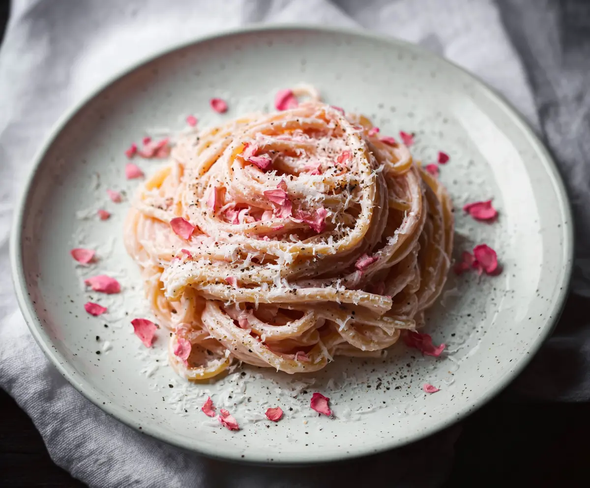 Transfer the pasta to plates, arranging it into neat nests or mounds. Top it off with extra finely grated Pecorino, a sprinkle of freshly cracked black pepper, and if you want to go the extra mile, add some edible rose petals for a beautiful presentation.