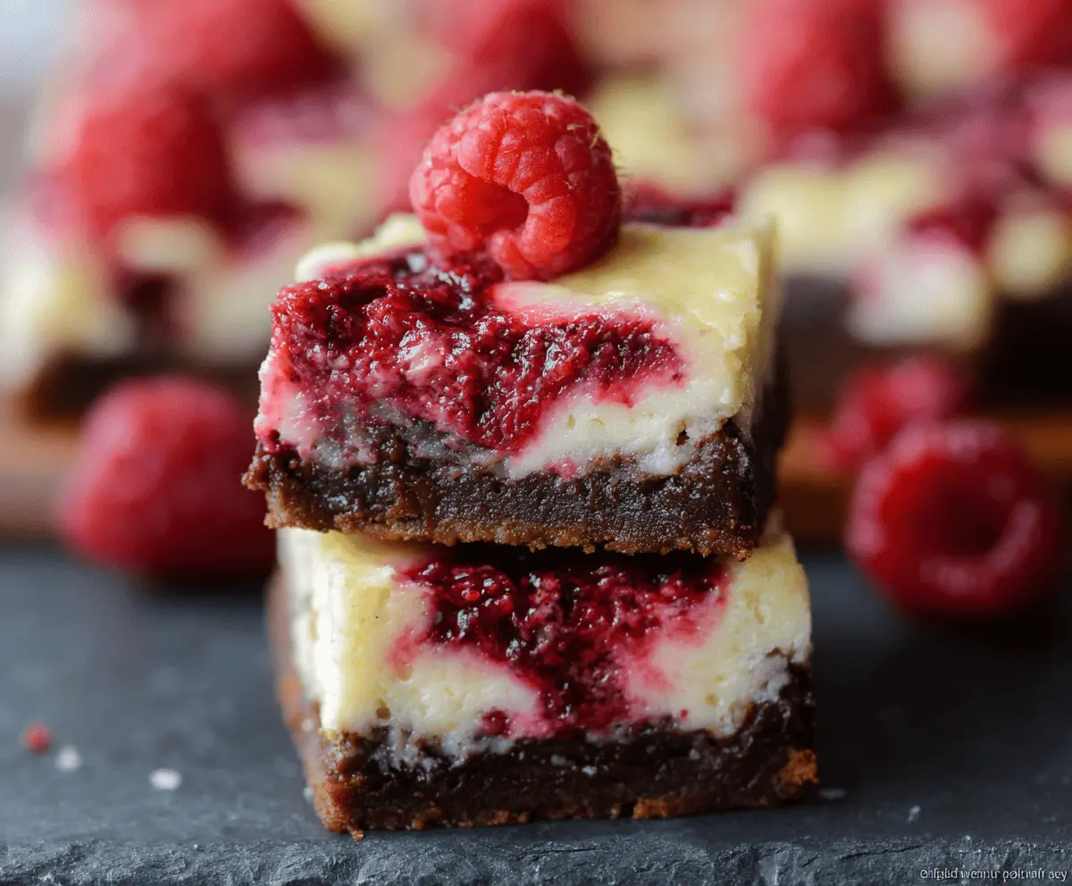 Enjoy your rich, creamy Raspberry Cheesecake Bars with a delicious brownie and graham cracker crust! They’re sure to impress family and friends alike!