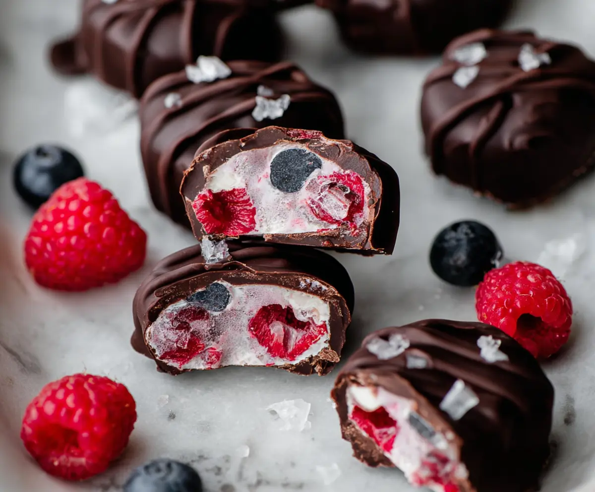 This recipe beautifully combines creamy, tangy yogurt and juicy berries, all wrapped in a rich chocolate shell. Enjoy your delightful treats!