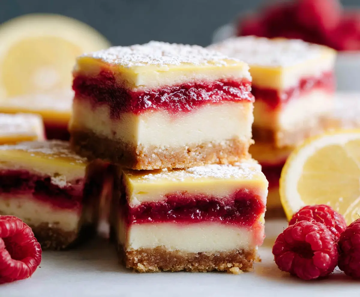 These Raspberry Lemon Cheesecake Bars are a sweet and tangy treat on a buttery crust. With creamy cheesecake, fresh raspberries, and a splash of lemon, they’re truly refreshing!