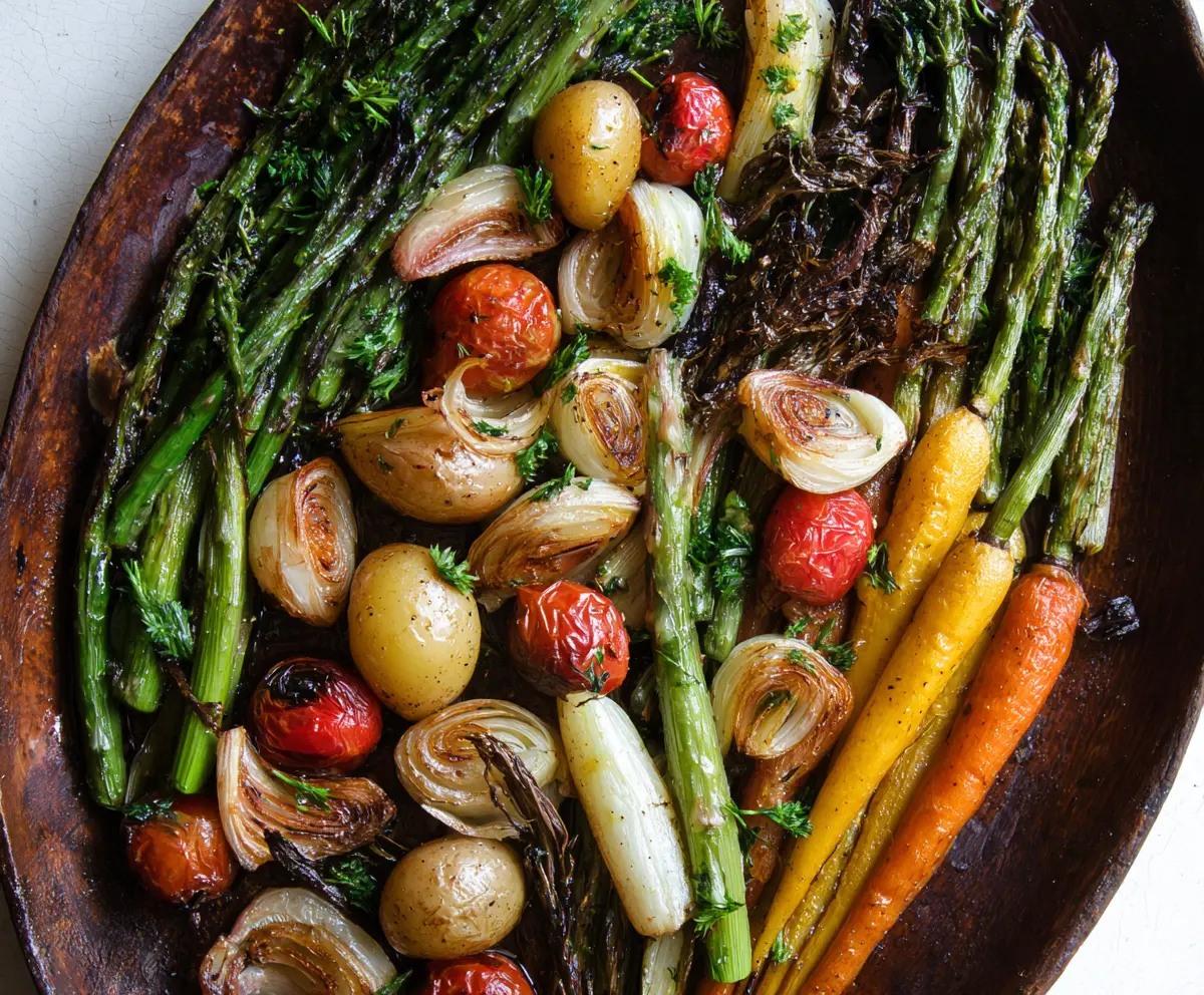 Roasted Spring Vegetables are a colorful and tasty way to enjoy fresh veggies! Imagine carrots, asparagus, and bell peppers, all baked until they’re nicely caramelized.