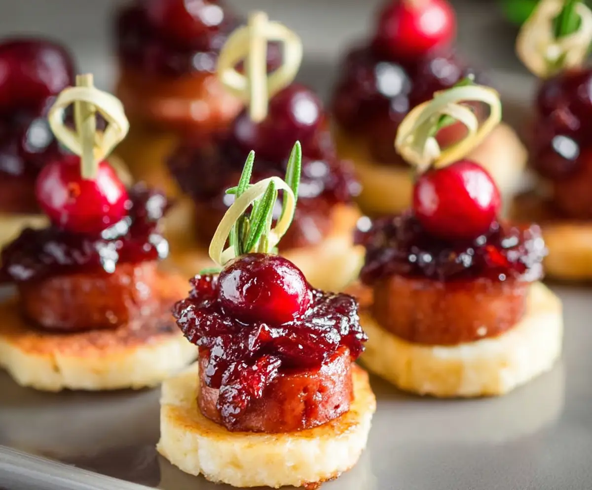 Using a spoon, add a small amount of the cranberry mixture onto each sausage slice. Don’t be shy—each bite deserves that sweet and tart goodness!