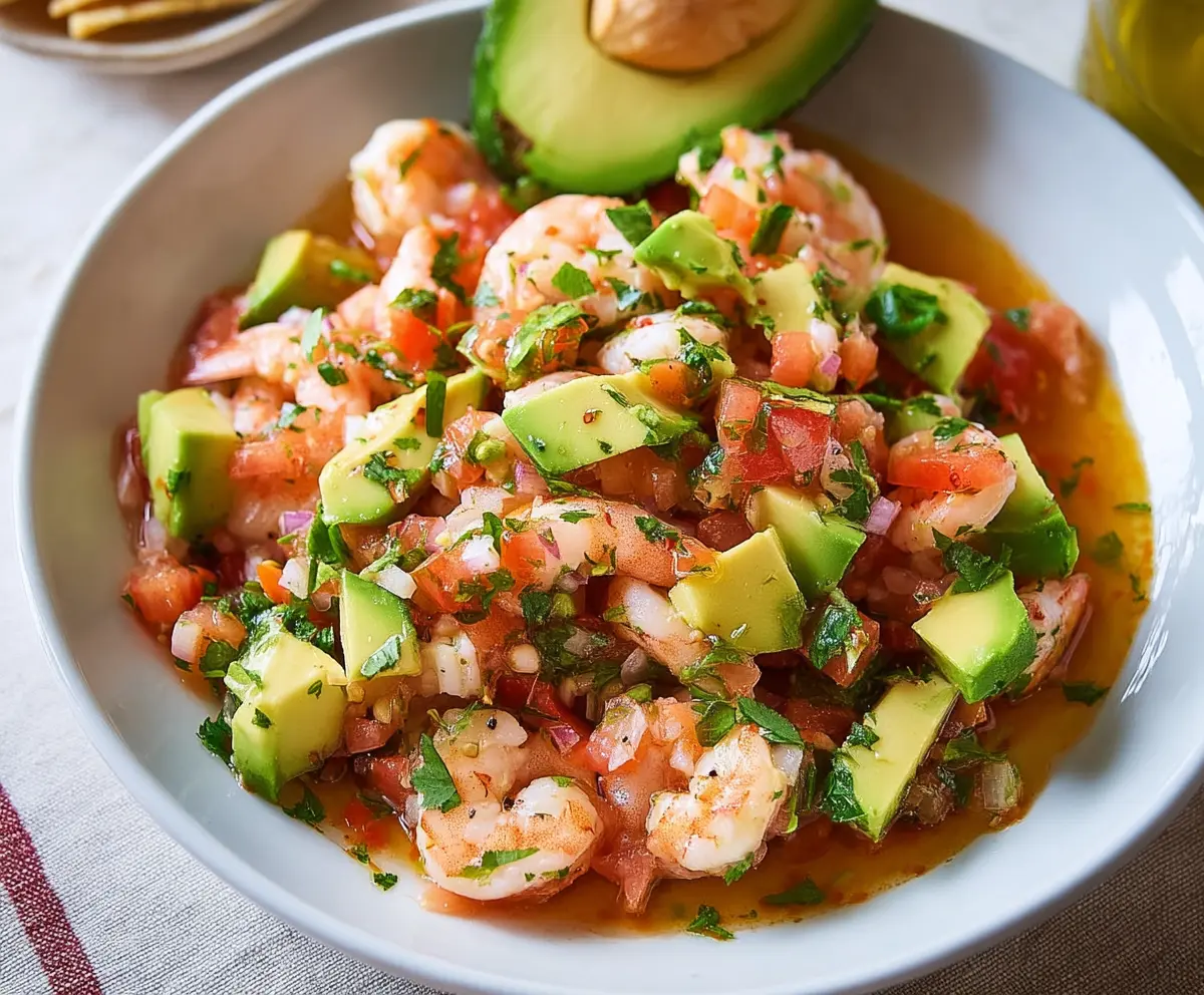 Enjoy your fresh, zesty Shrimp Ceviche with creamy avocado that perfectly balances the bright and tangy flavors of citrus!