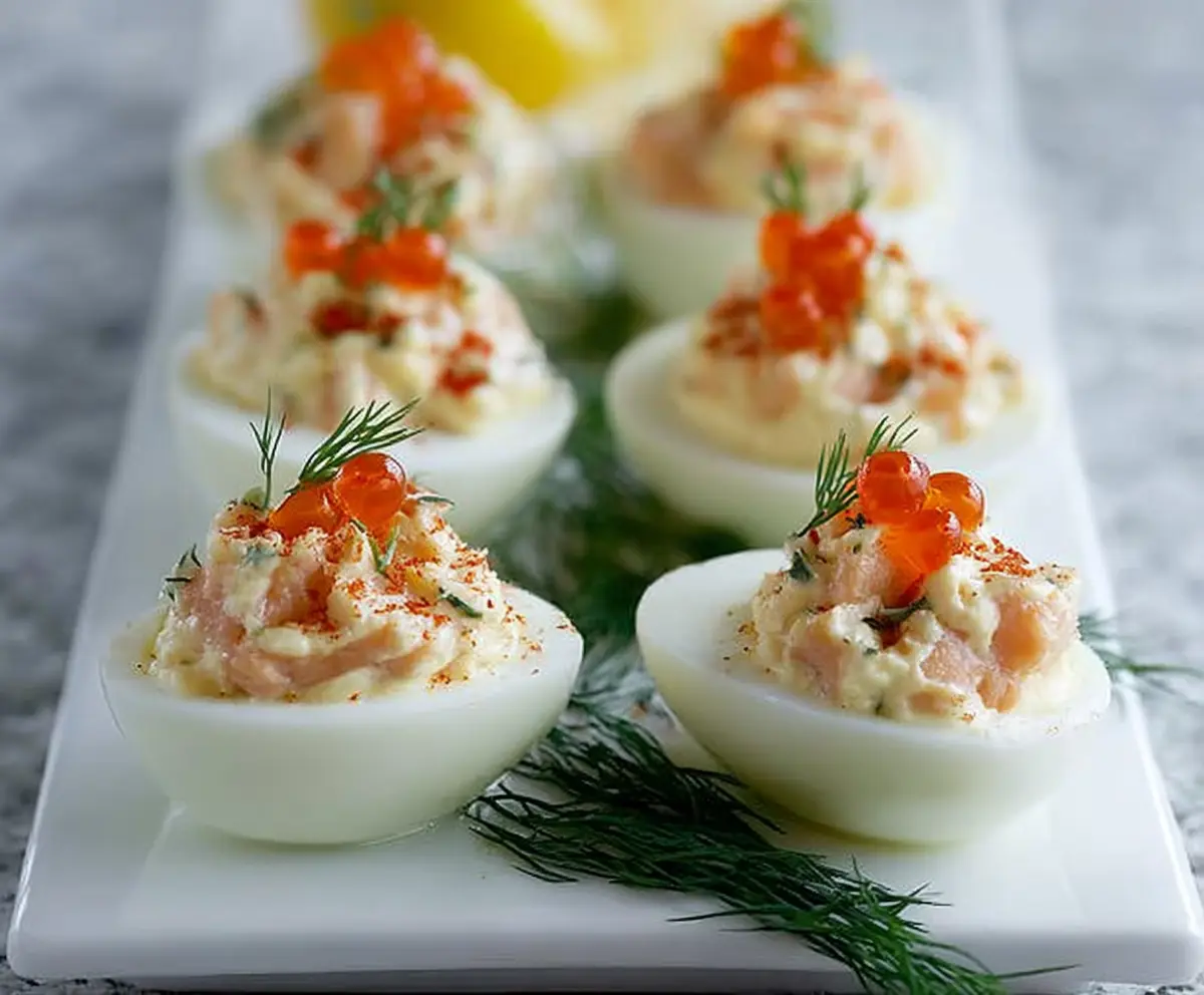 Enjoy your elegant and flavorful smoked salmon stuffed eggs!
