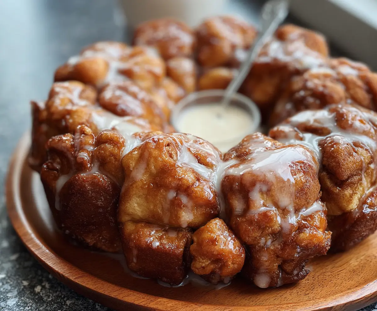 Once cooled slightly, carefully remove the monkey bread from the pan and place it onto a serving plate. Drizzle the glaze generously over the warm monkey bread, and it’s ready to be pulled apart and enjoyed! Serve warm as a delightful breakfast treat or a sweet dessert!