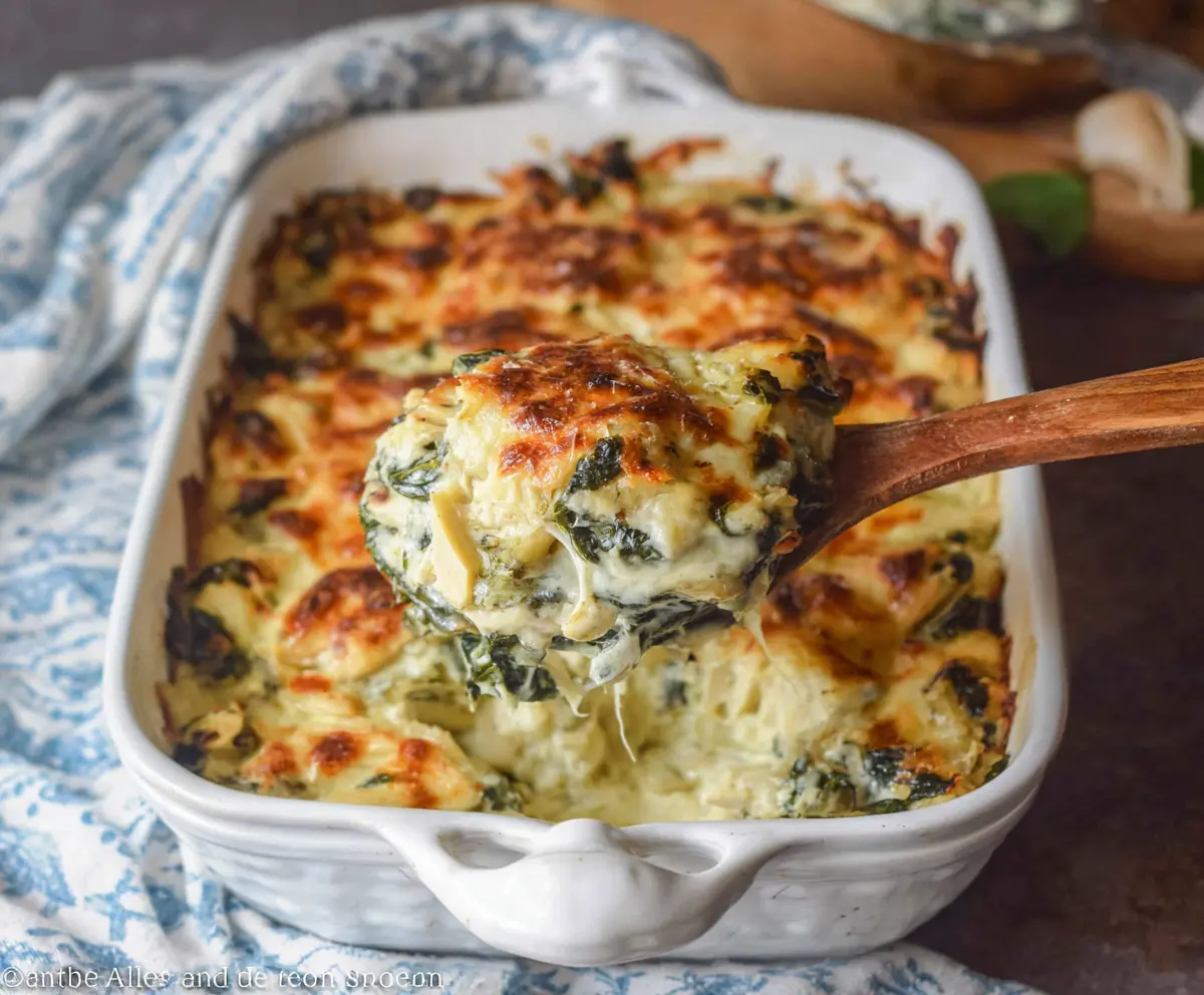 This Spinach Artichoke Chicken Casserole is a warm, cheesy dish that’s packed with flavors! The mix of spinach, artichokes, and tender chicken makes it super tasty and fun to eat.