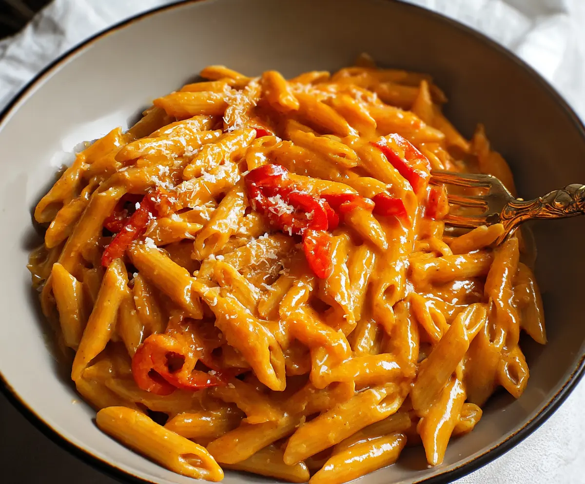 Your Sweet Pepper Pasta is ready! Serve it immediately, garnished with extra Parmesan cheese and basil if you like. Enjoy this creamy, comforting dish!