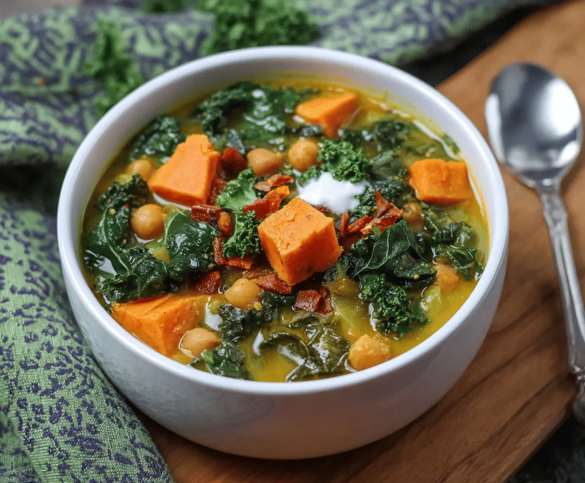 Enjoy this hearty and nutritious Sweet Potato Kale Soup that combines creamy sweet potatoes with vibrant kale and protein-packed chickpeas! Perfect for warming your soul!