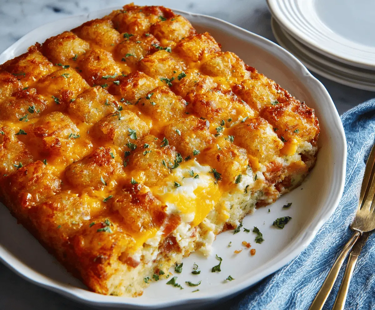 Enjoy your warm, cheesy, and comforting Tater Tot Egg Breakfast Casserole! Perfect for about 8 servings, it’s great for a hearty breakfast or brunch that everyone will love.