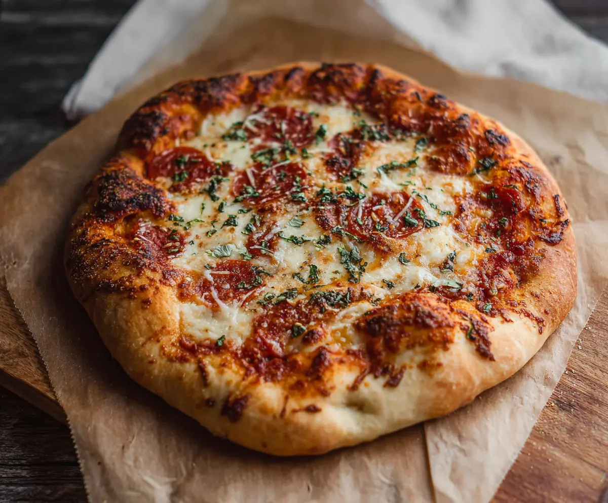 This sourdough crust is sure to impress, giving you a delightfully crispy exterior with a fluffy and chewy interior—a perfect open canvas for all your favorite toppings!