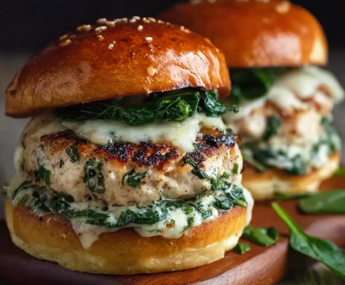These White Cheddar Spinach Chicken Burgers are a tasty twist on classic burgers! Loaded with juicy chicken, creamy white cheddar, and fresh spinach, they are packed with flavor.